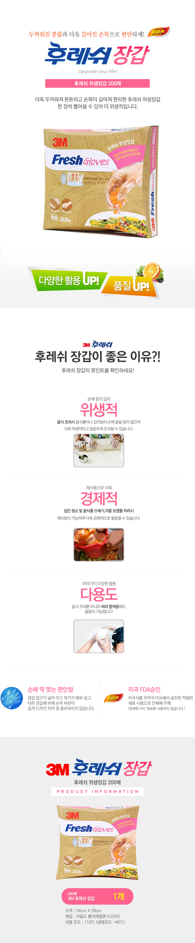 3M 후레쉬 뽑아쓰는 장갑 200매 (랩/팩/호일/고무)