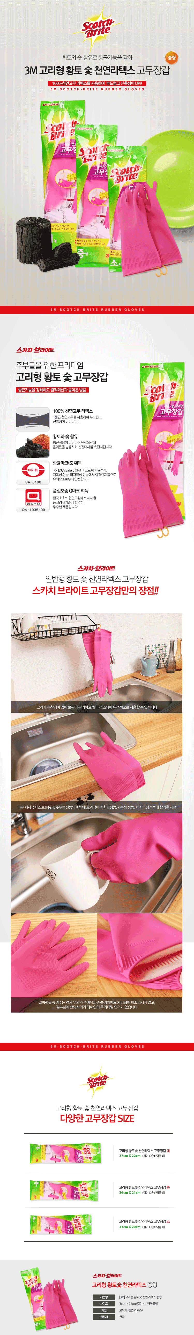 3M 황토 숯 고리형 고무장갑 (중) (랩/팩/호일/고무)