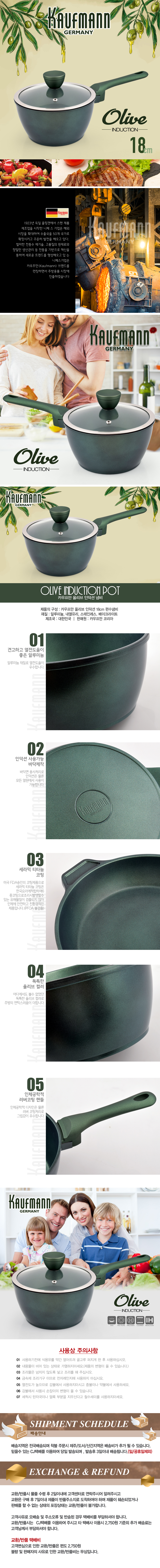 독일 카우프만 올리브 인덕션 냄비 18cm 편수 (금속냄비/웍/들통/일반솥)