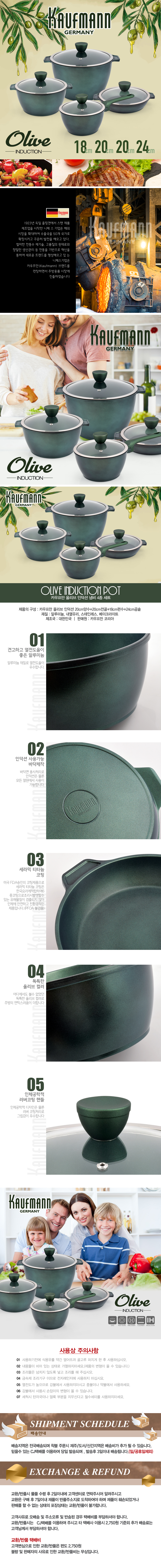 독일 카우프만 올리브 인덕션 냄비 4종세트(KOC-8P) (금속냄비/웍/들통/일반솥)