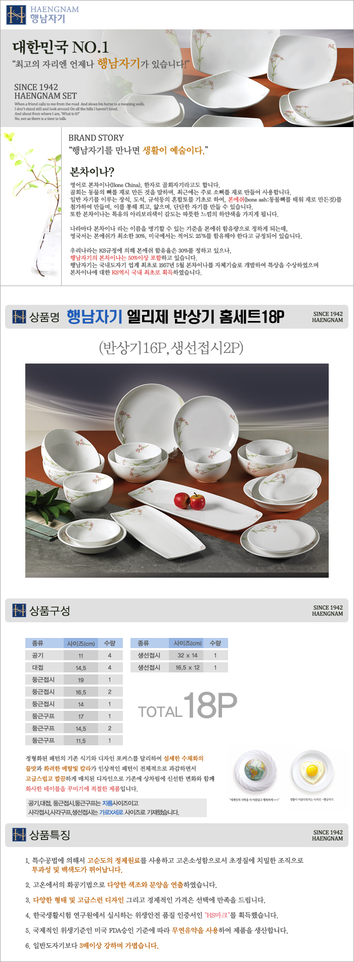 행남자기 엘리제 반상기세트18P (접시/찬기/성인식판)