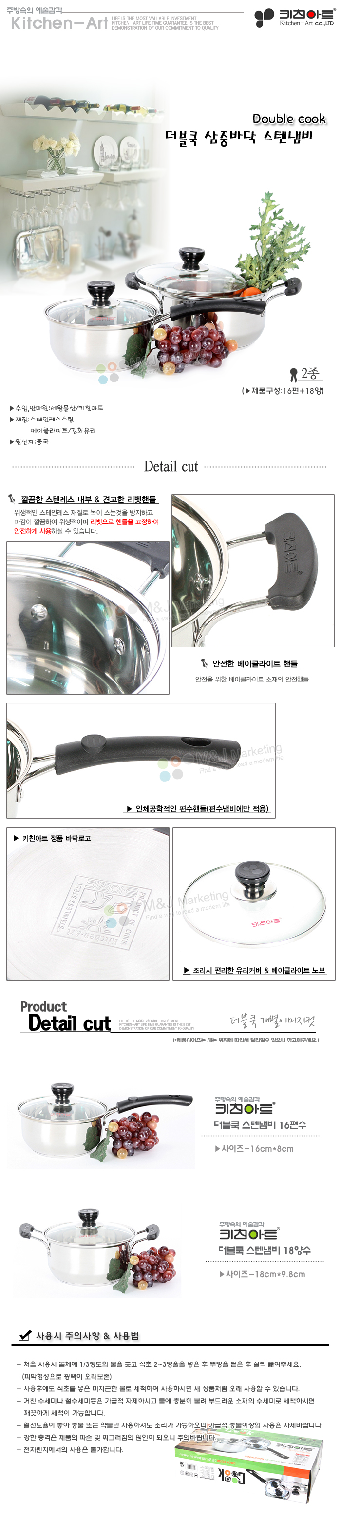 키친아트 더블쿡 삼중바닥 스텐냄비 2종(16편수+18양수) (냄비세트)