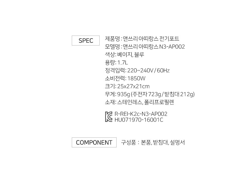 [엔쓰리] 아띠랑스 무선 전기 커피 포트 주전자 (보온주전자)