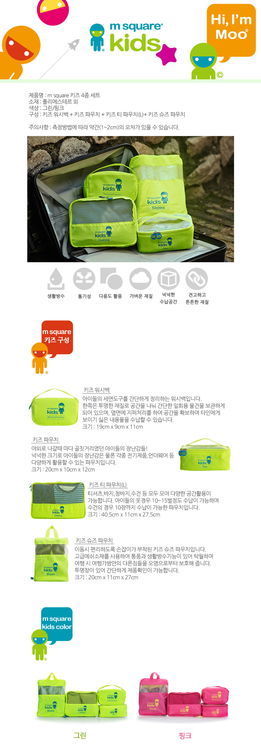 KIDS 4종세트/워시백+시스템+타셔츠L+슈즈파우치