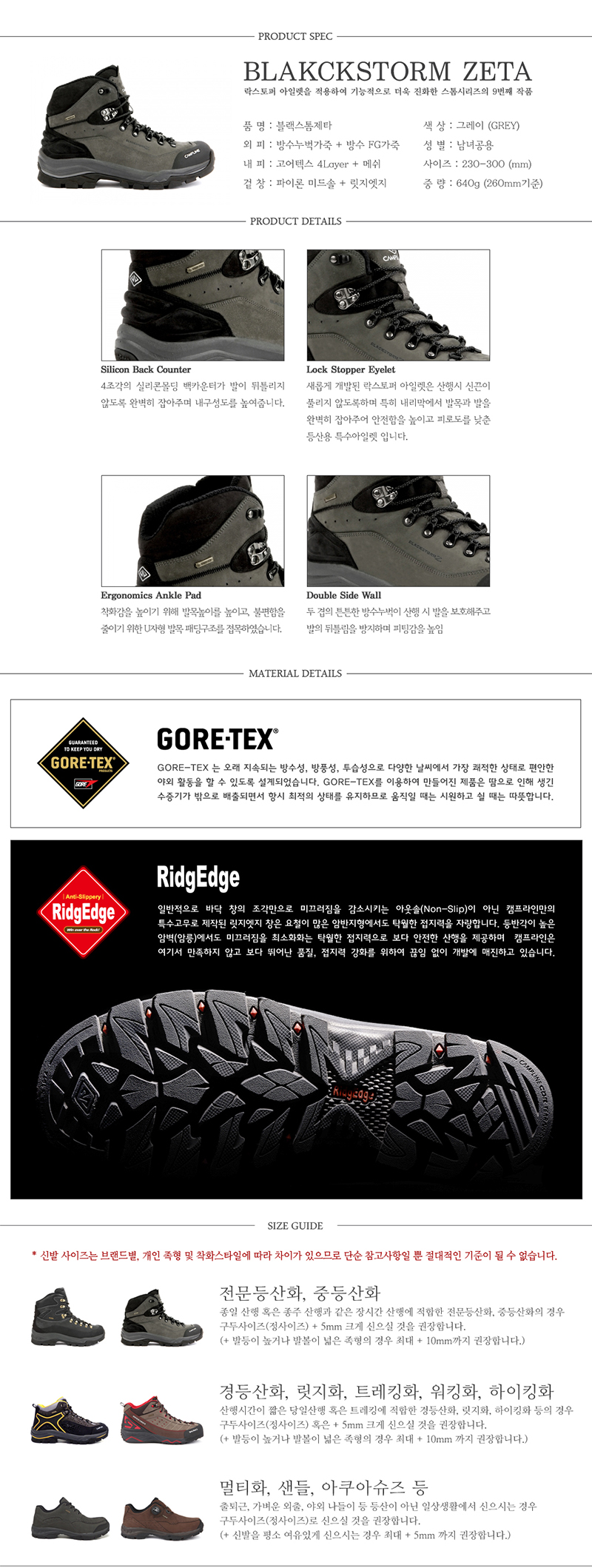 캠프라인 블랙스톰제타 고어텍스 중등산화 [남,여공용] 그레이