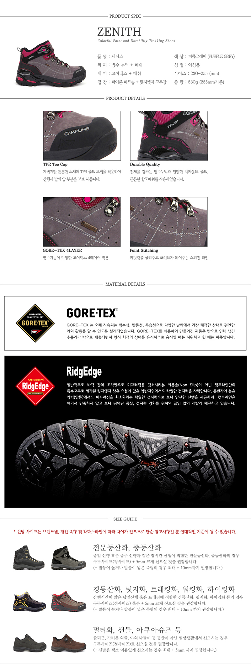 캠프라인 제니스 고어텍스 경등산화 [여성용] 퍼플
