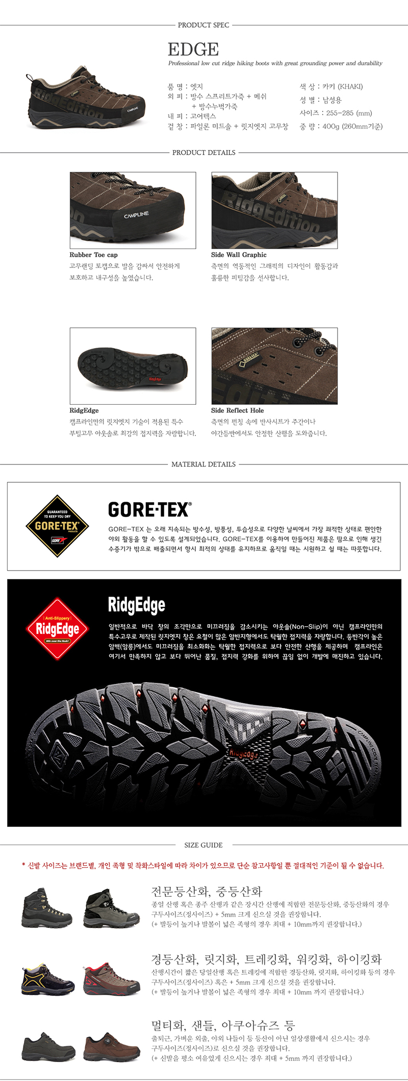 캠프라인 엣지 고어텍스 릿지화 [남성용] 카키