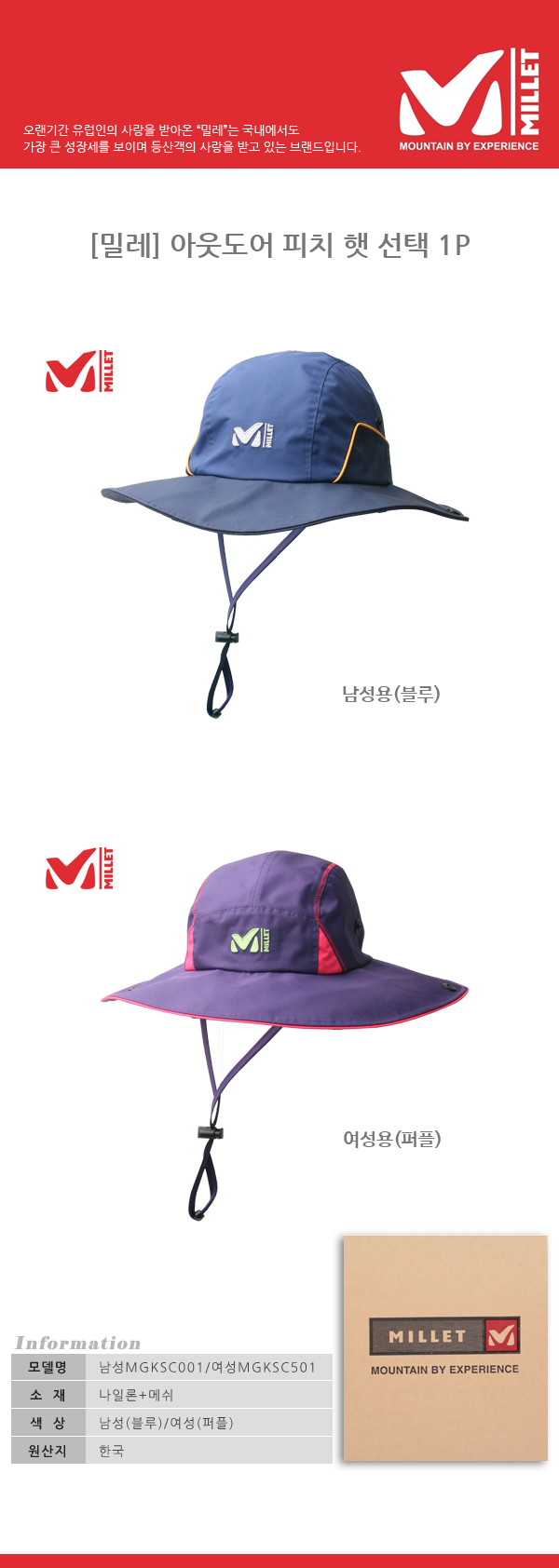 [밀레] 기능성 아웃도어 피치 햇 1P (남녀선택)