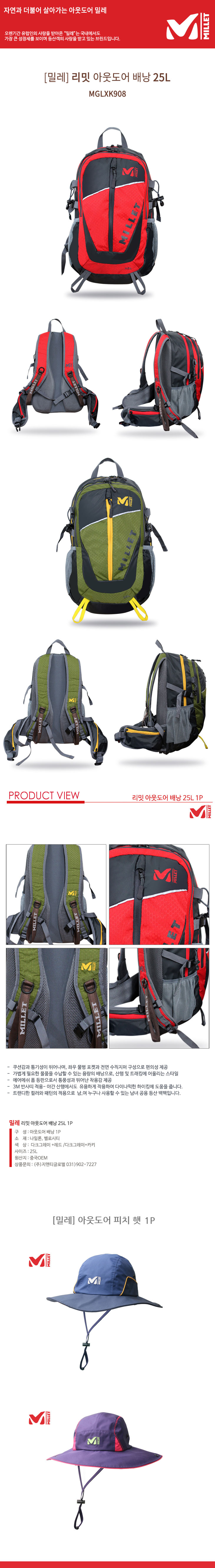 [밀레] 리밋 25L 기능성 아웃도어 2종 세트 (배낭 1P+ 모자 1P)