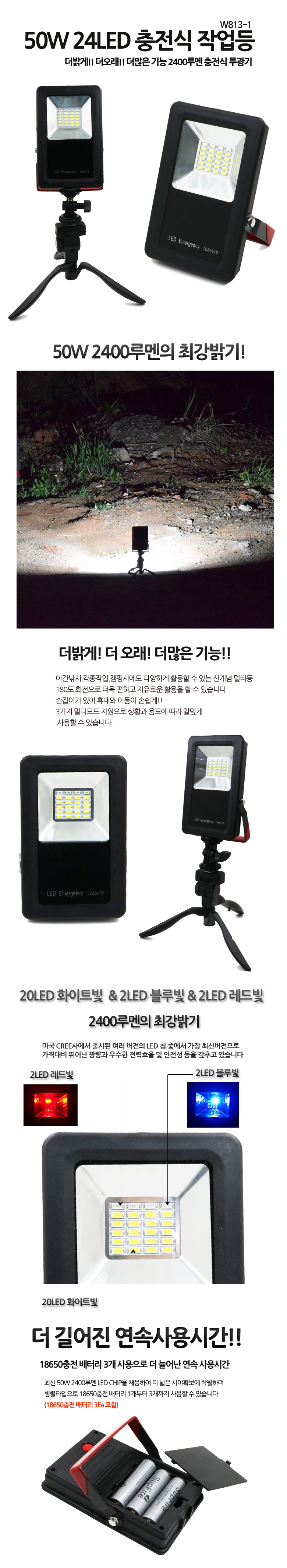 50W 24 LED 충전식 작업등 투광기 랜턴 서치라이트