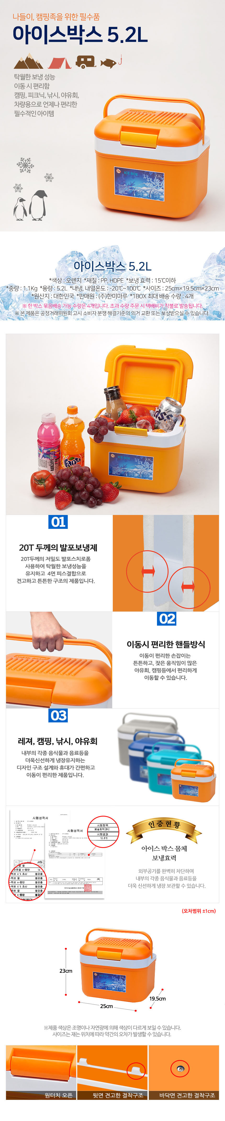 탁월한 보냉성능 이동시 편리함.캠핑,피크닉,낚시,야유회,차량용으로 언제나 편리한 필수적인 아이템