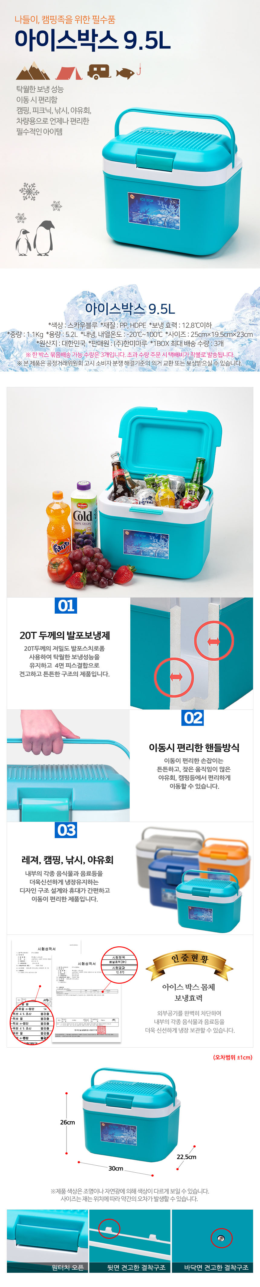 탁월한 보냉성능 이동시 편리함.캠핑,피크닉,낚시,야유회,차량용으로 언제나 편리한 필수적인 아이템