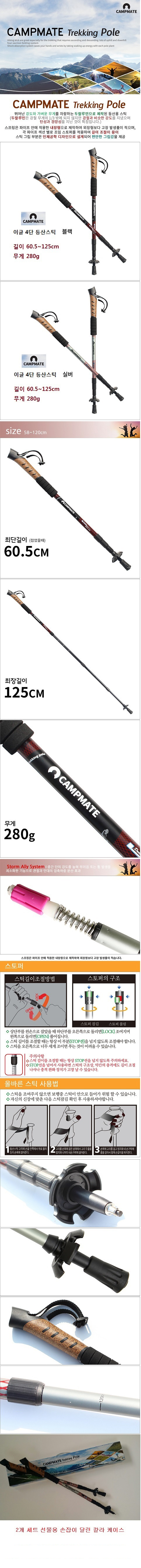 뛰어난 강도와 가벼운 무게를 자랑하는 두랄루민으로 제작된 등산용 스틱입니다