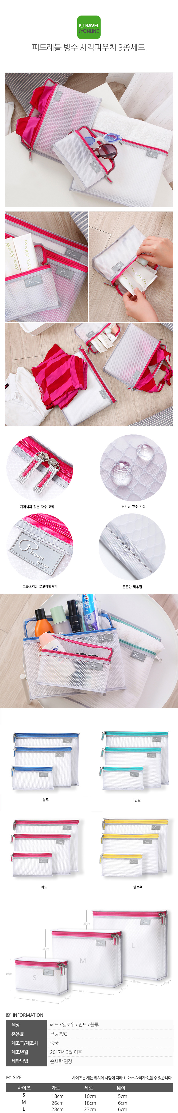 피트래블 방수 사각파우치 3종세트