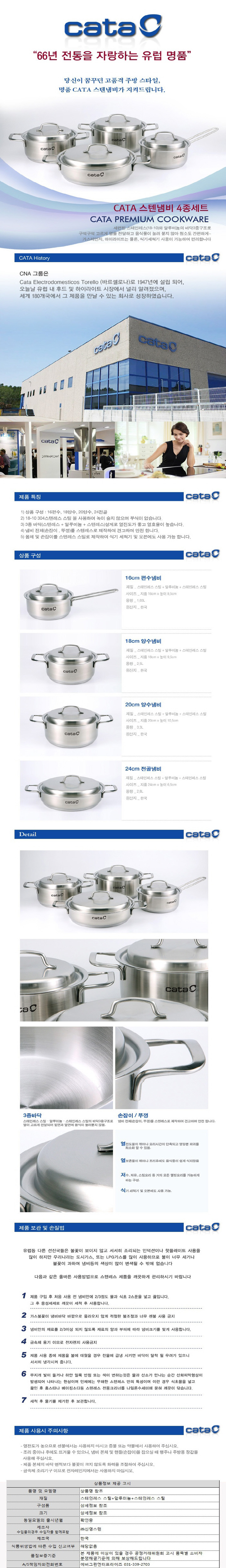 [카타] 유럽명품 CATA 스텐냄비 4종 세트 (16편수, 18양수, 20양수, 24전골)