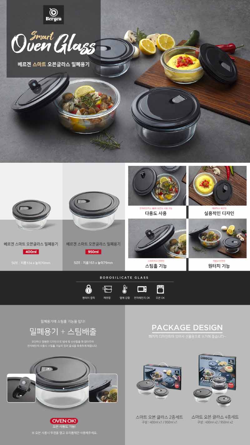 베르겐 스마트 오븐글라스 밀폐용기4조세트