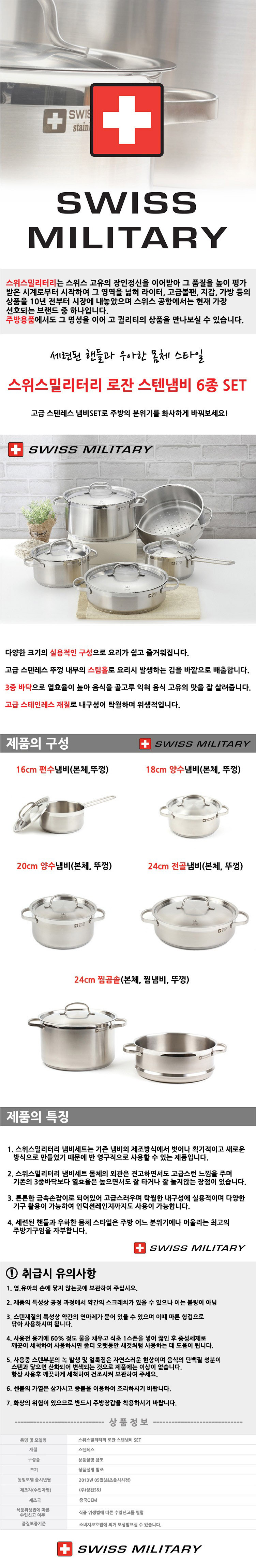 [스위스밀리터리] 로잔스텐냄비 6종SET ROSAN-SSJ06