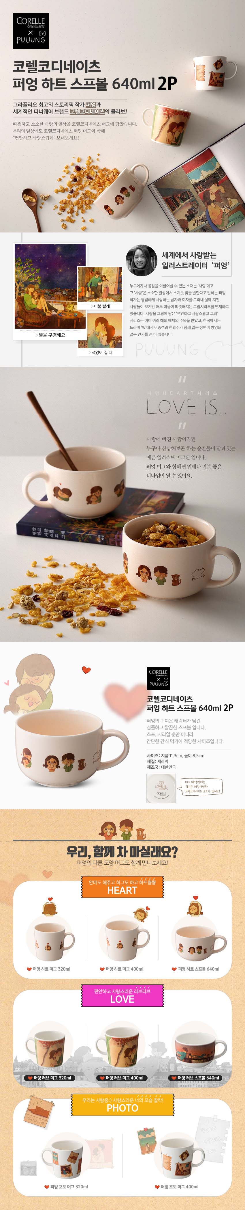 코렐코디네이츠 퍼엉 하트 스프볼 640ml 2p