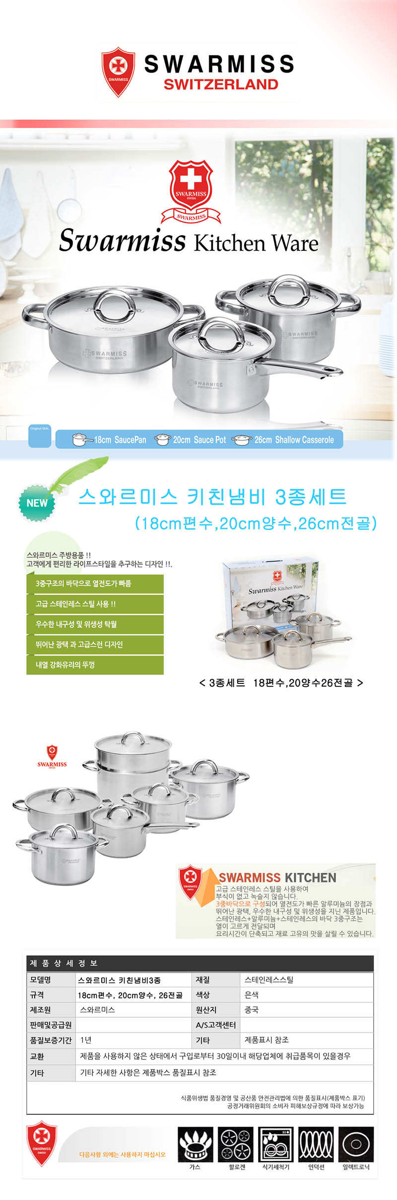 스와르미스 키친냄비 3종세트(18편수,20양수,26전골)