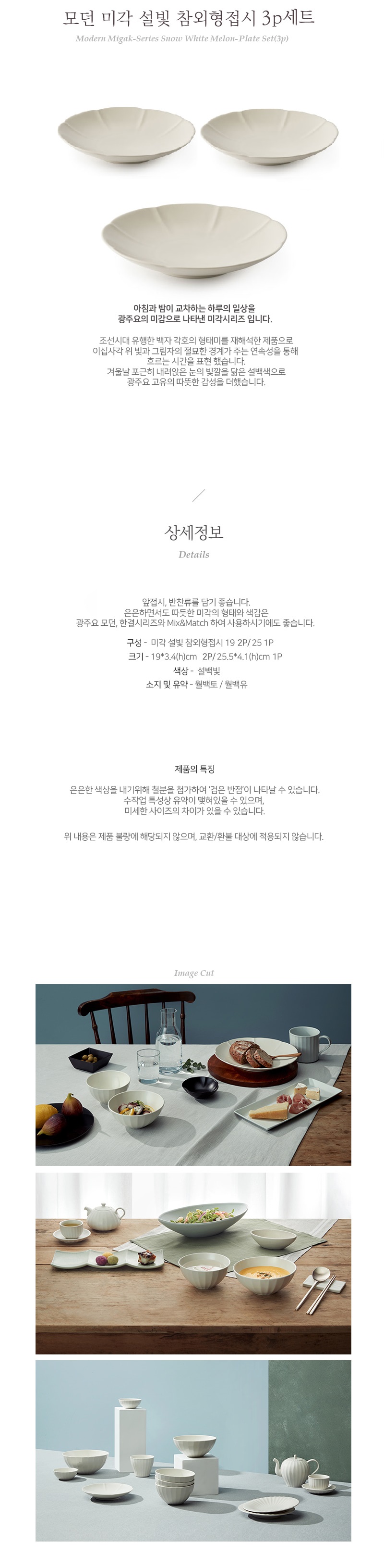 광주요 미각 참외형접시 3p 세트