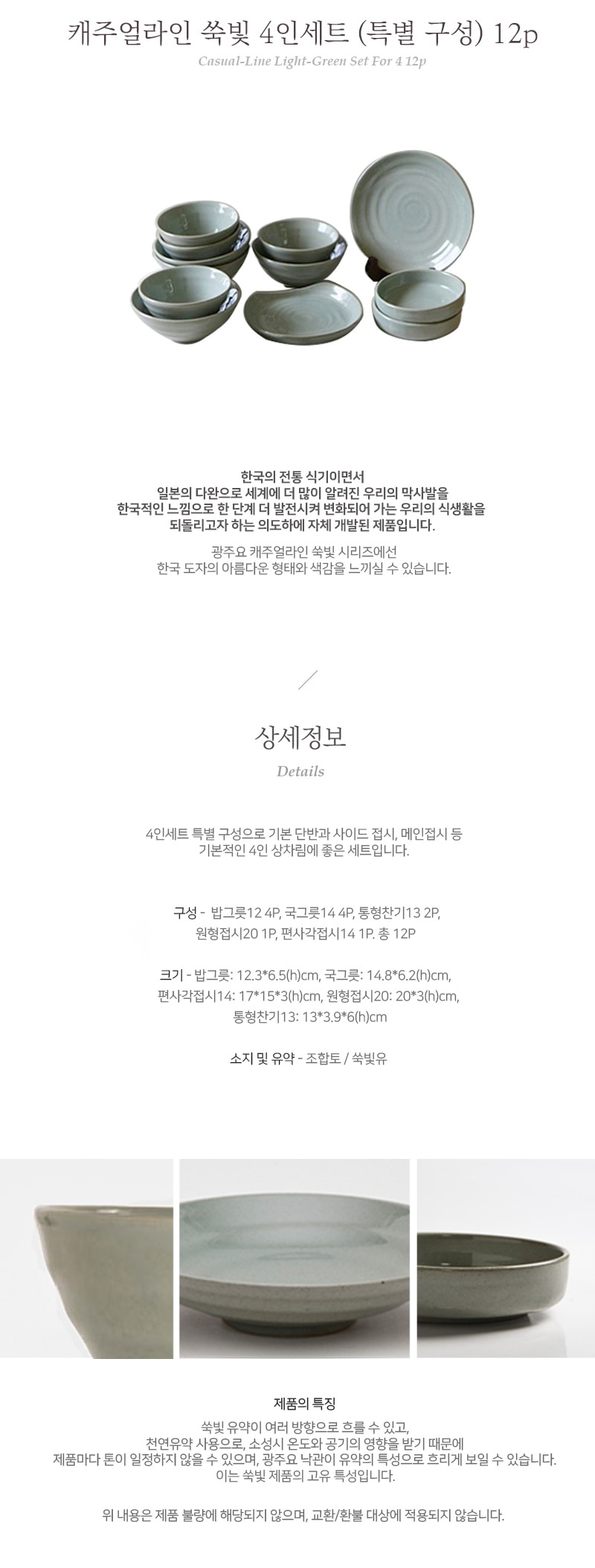 광주요 캐주얼라인 연쑥빛 4인 홈세트(12p)