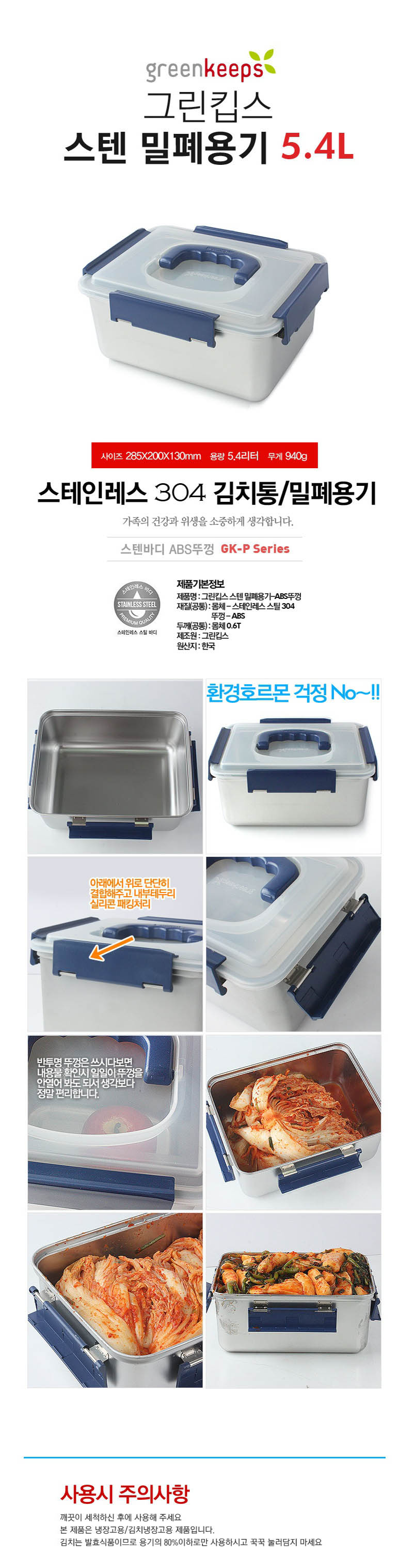 [그린킵스] 스텐 PP뚜껑 김치통 5.4L