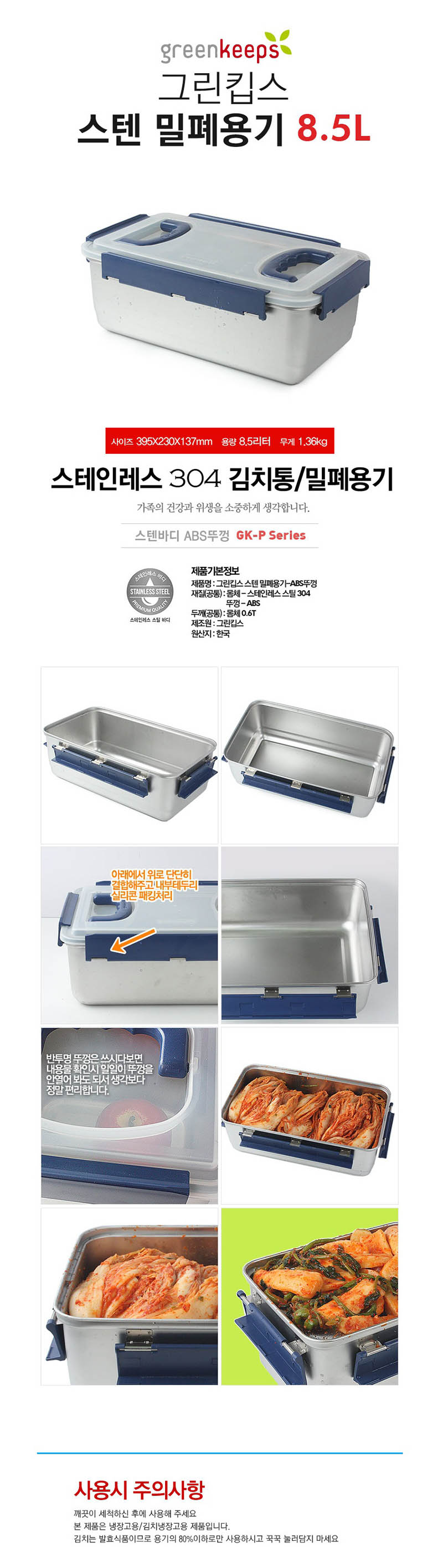[그린킵스] 스텐 PP뚜껑 김치통 8.5L