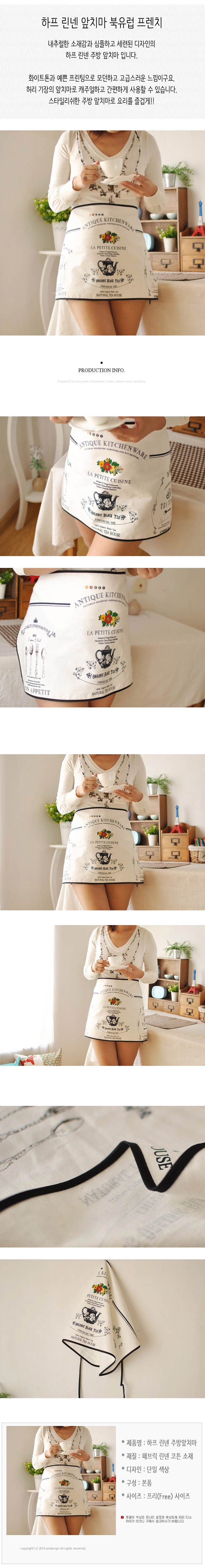 하프 린넨 앞치마 북유럽 프렌치