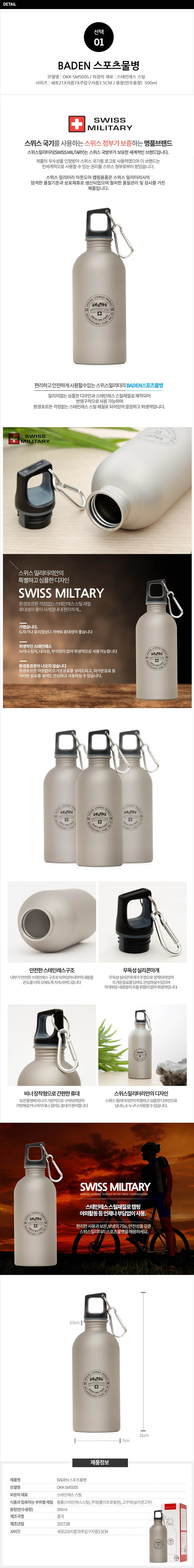 [스위스밀리터리] BADEN 스포츠 물병 OK-SM500S