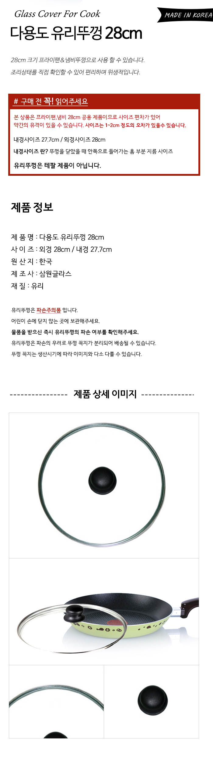 프라이팬 28cm, 멀티팬 28cm, 미니팬 18cm, 유리뚜껑 28cm