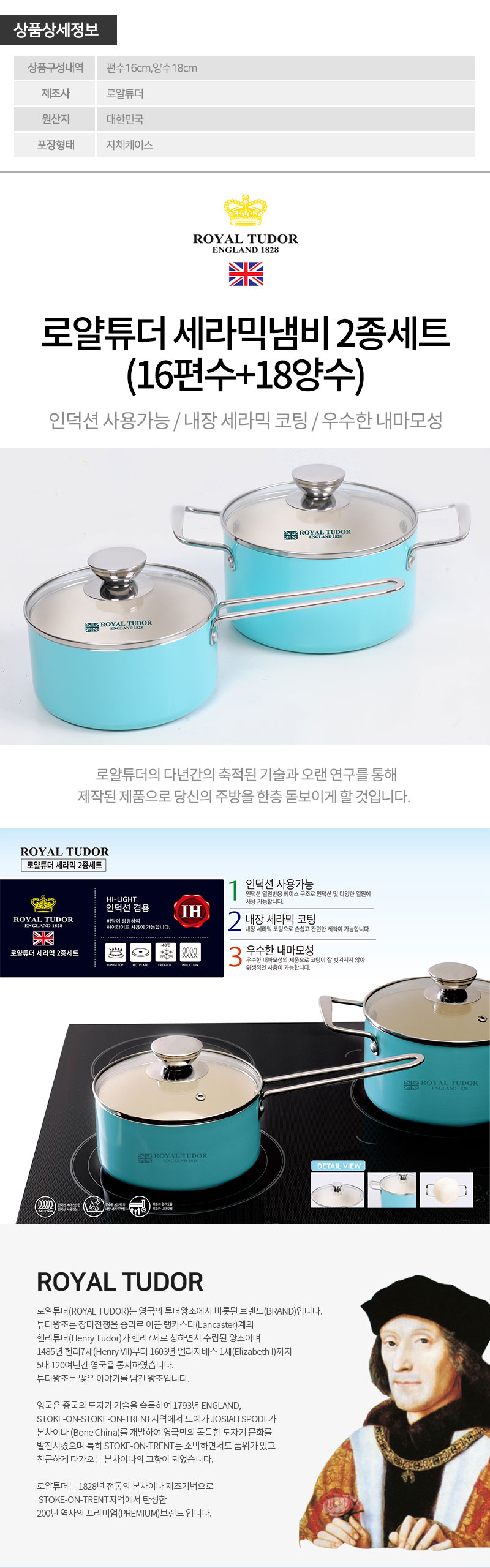 로얄튜더 세라믹냄비 2종세트(16편수+18양수)