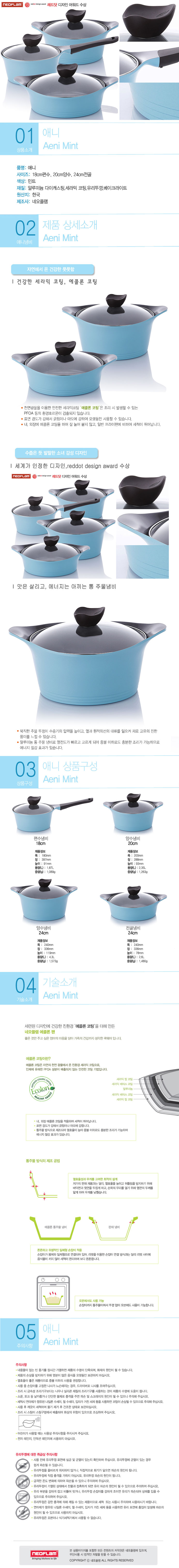 [네오플램] 세라믹프로코팅 Aeni(애니) 통주물 냄비 3종세트