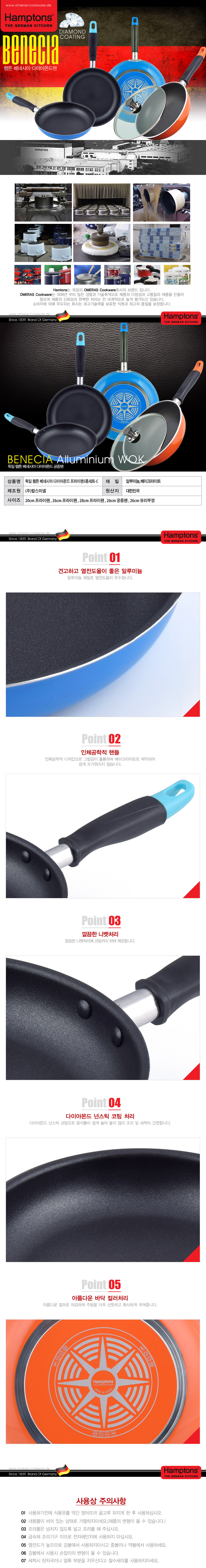 [Hamptons]독일 햄튼 베네시아 다이아몬드 후라이팬 5종세트(20F+26F+28F+26W+26G)