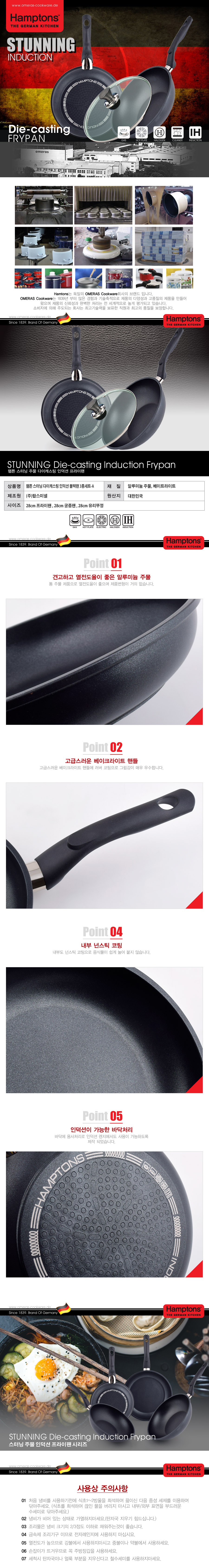 [Hamptons]독일 햄튼 스터닝 다이캐스팅 인덕션 블랙 후라이팬 3종세트(28F+28W+28G)
