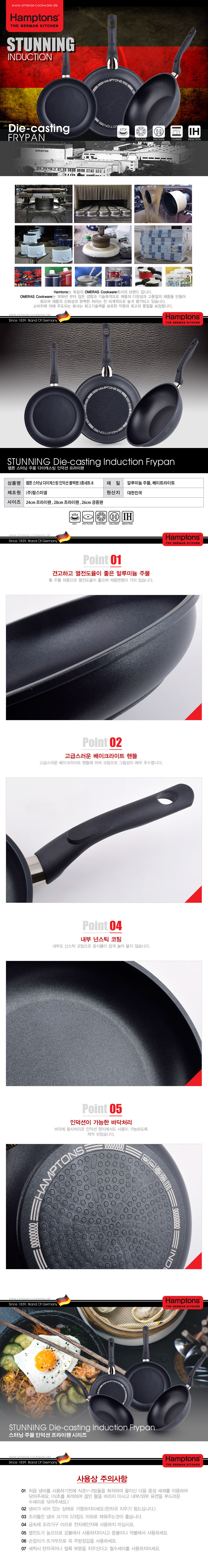 [Hamptons]독일 햄튼 스터닝 다이캐스팅 인덕션 블랙 후라이팬 3종세트(24F+28F+26W)