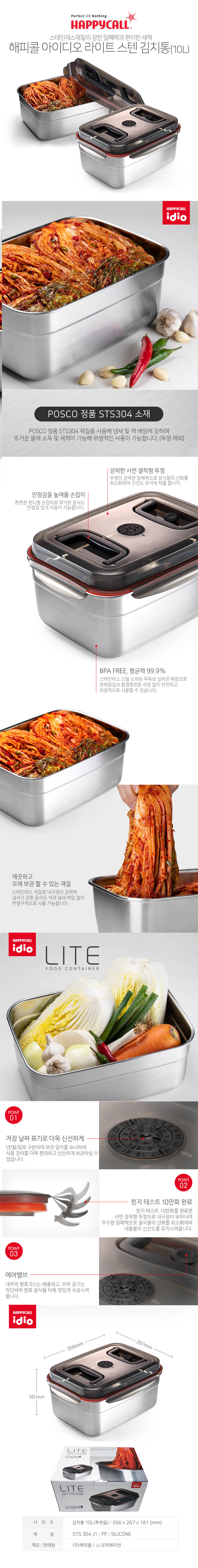 해피콜 아이디오 라이트 스텐 김치통 10L
