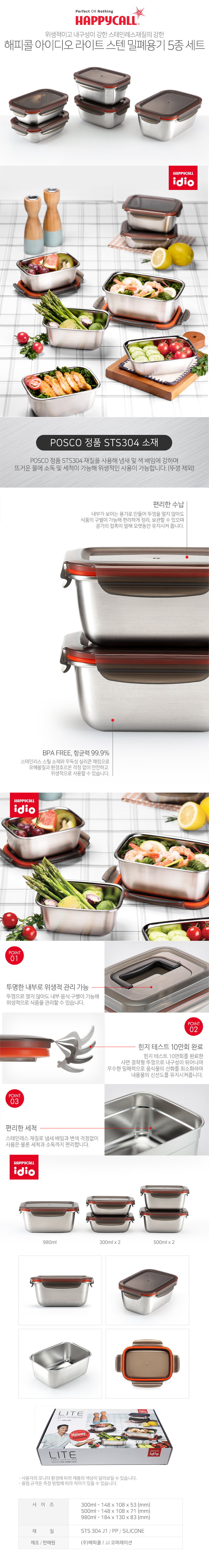 해피콜 아이디오 라이트 스텐 밀폐용기 5종