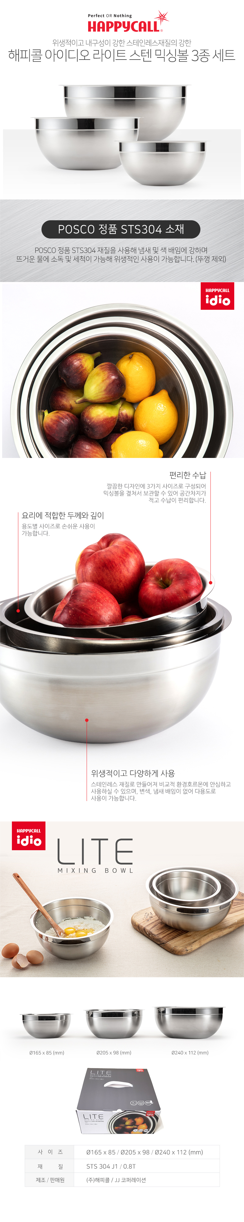 해피콜 아이디오 라이트 스텐 믹싱볼 3종