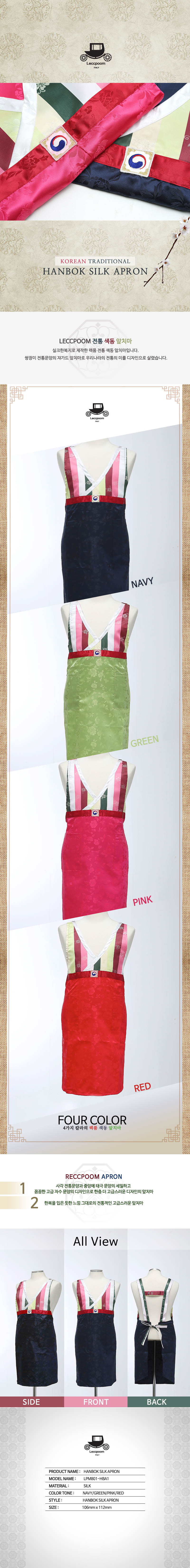국립박물관문화재단 및 국립민속박물관 문화상품점에서 판매중/ 사각 전통문양과 중앙에 태극 문양의 세밀하고 꼼꼼한 고급 자수 문양 사용 한복을 입은 듯한 느낌 그대로의 전통 앞치마