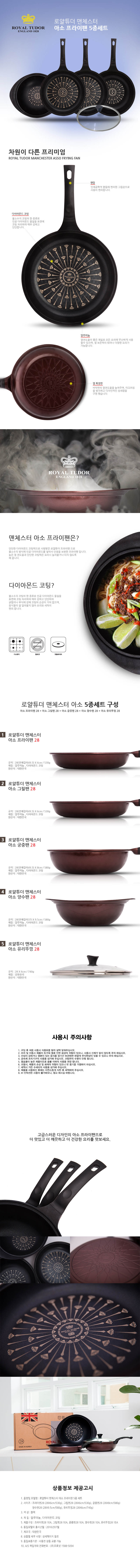 로얄튜더 아소 다이아몬드 팬 5종세트 (후라이팬+궁중팬+그릴팬+양수웍+유리뚜껑 28cm)
