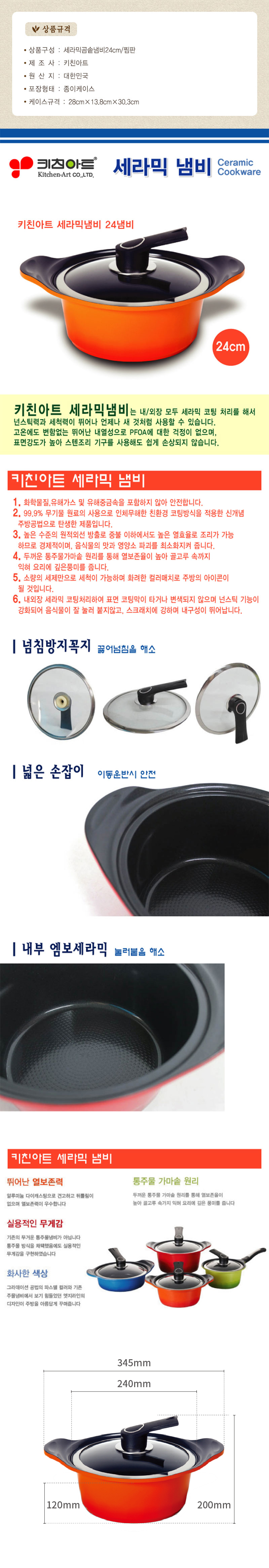 키친아트 넘침방지 세라믹냄비 24양수