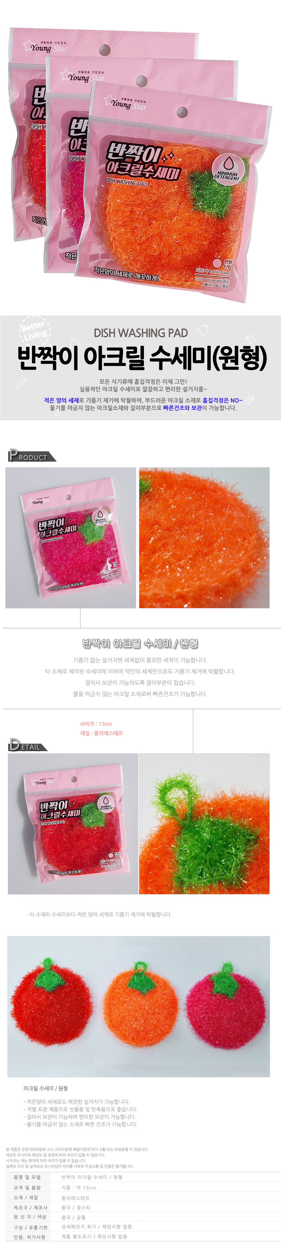 반짝이 아크릴 수세미(원형) 5ea /8809105117482