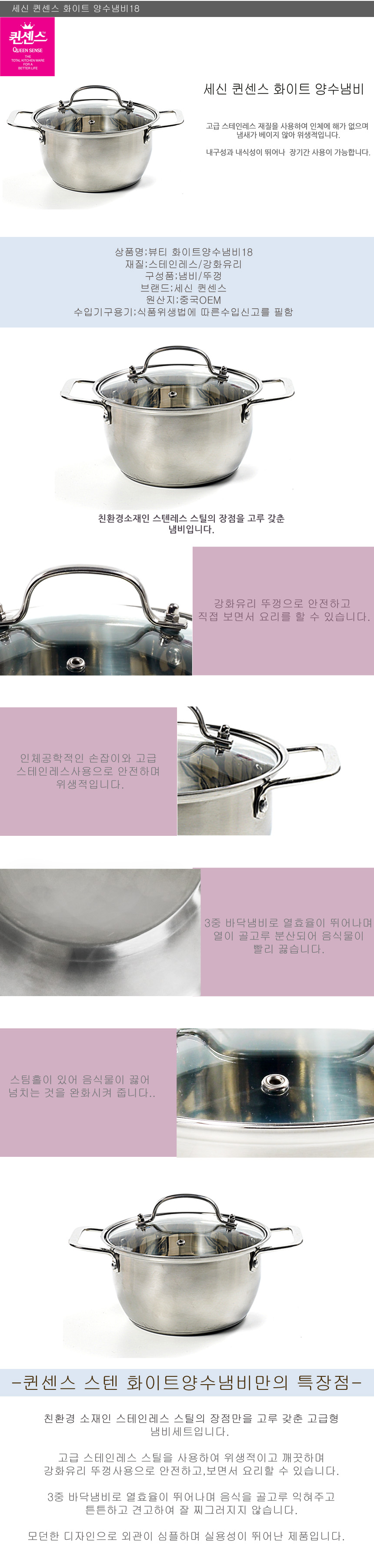 세신퀸센스 화이트 양수냄비 18cm