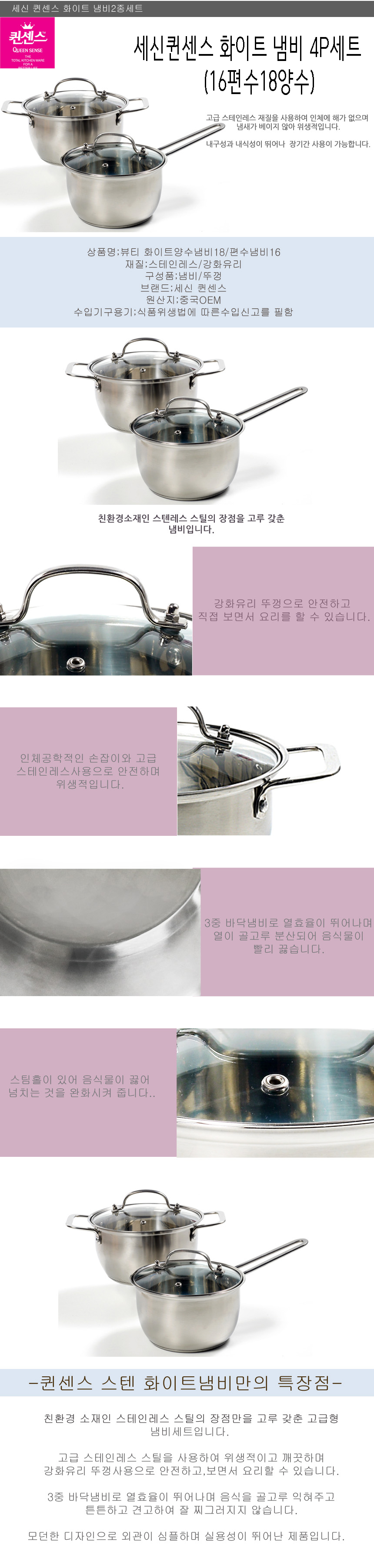 세신퀸센스 화이트 냄비 4P세트 (16편수/18양수)