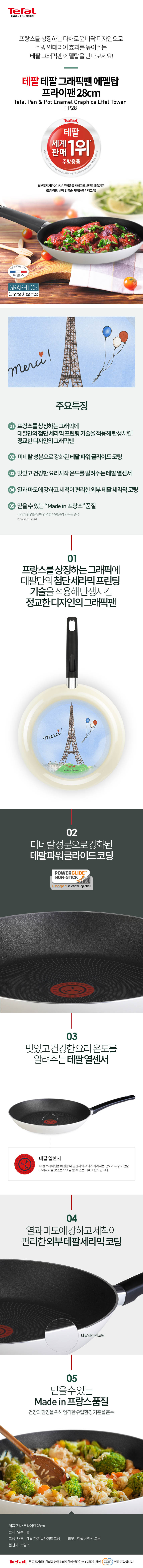 [테팔] 에펠탑 프라이팬 28cm+파워블루 멀티팬 28cm+유리뚜껑 28cm TFC-EF8PBWG