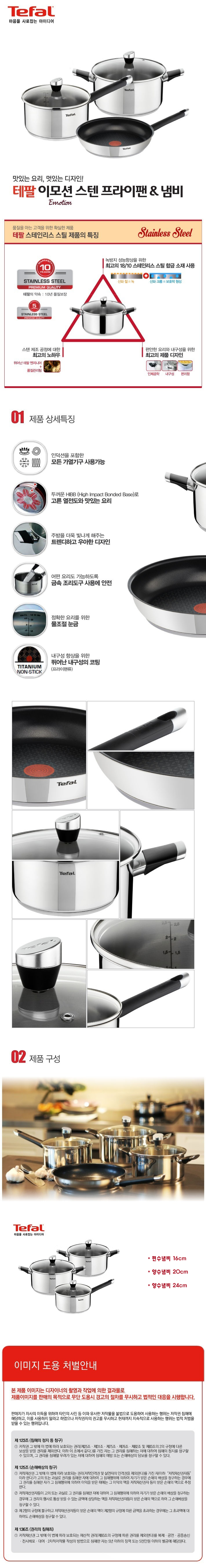 [테팔]이모션 3종냄비 (편수16+양수20+양수24)