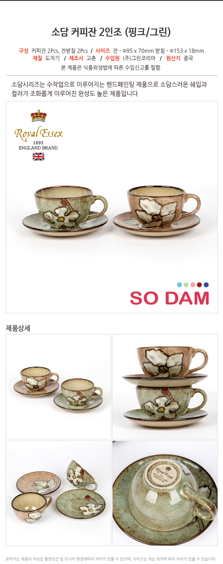 로얄에식스 소담 커피잔 2인조 (핑크,그린)