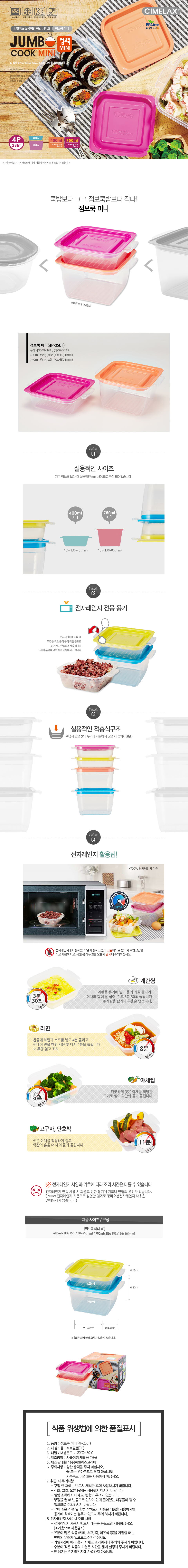[씨밀렉스]점보 쿡 미니 4P 400ml * 1750ml * 1(뚜껑 색상 랜덤 )