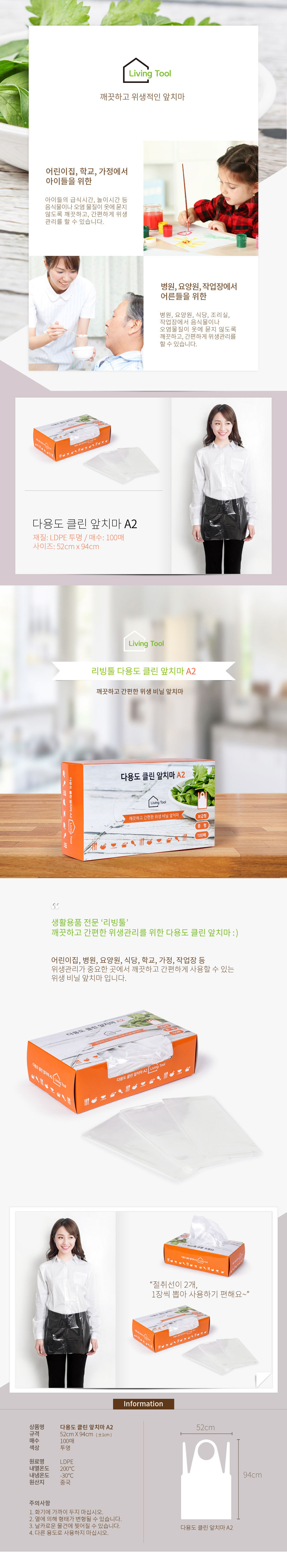 리빙툴 다용도 클린 앞치마 중형/보급형 100매