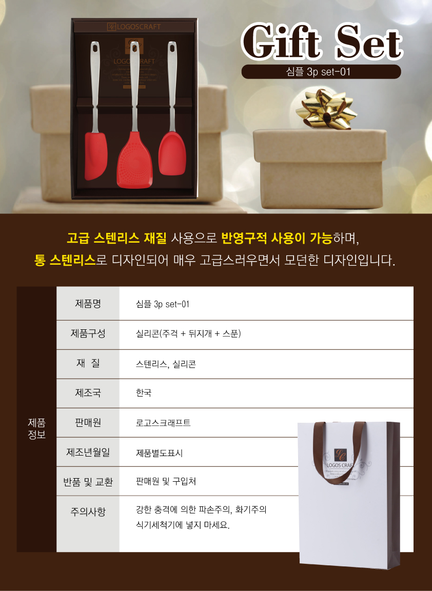 실리콘 주걱+뒤지개+스푼 구성으로 고급 스텐리스 재질 사용으로 반영구적 사용이 가능하며 통 스텐리스로 디자인되어 매우 고급스러우면서 모던한 디자인입니다